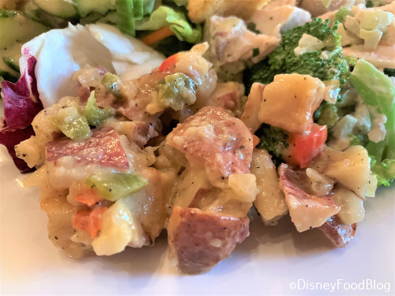 The potato salad was a vinegar-based mixture, which we quite enjoyed! It’s much lighter than your traditional mayo-based, and we loved that the skins were left on those lil’ baby reds. If you’re not a vinegary-person though, you may want to skip this one.