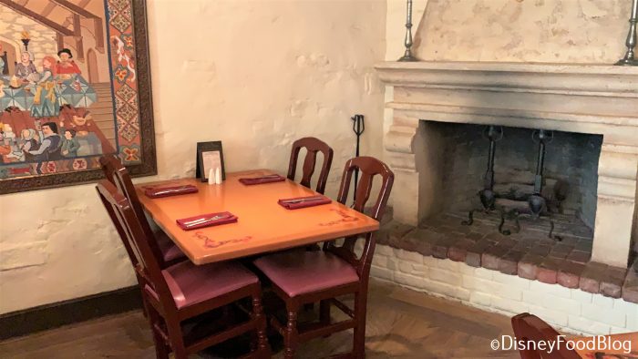 After meeting and greeting with Belle, who is happy to sign autograph books and is the only princess here to have a Photopass Cast Member, you’ll be escorted to your table. There are several rooms in Akershus, all reminiscent of being in a castle of course! There are stone walls in some rooms…