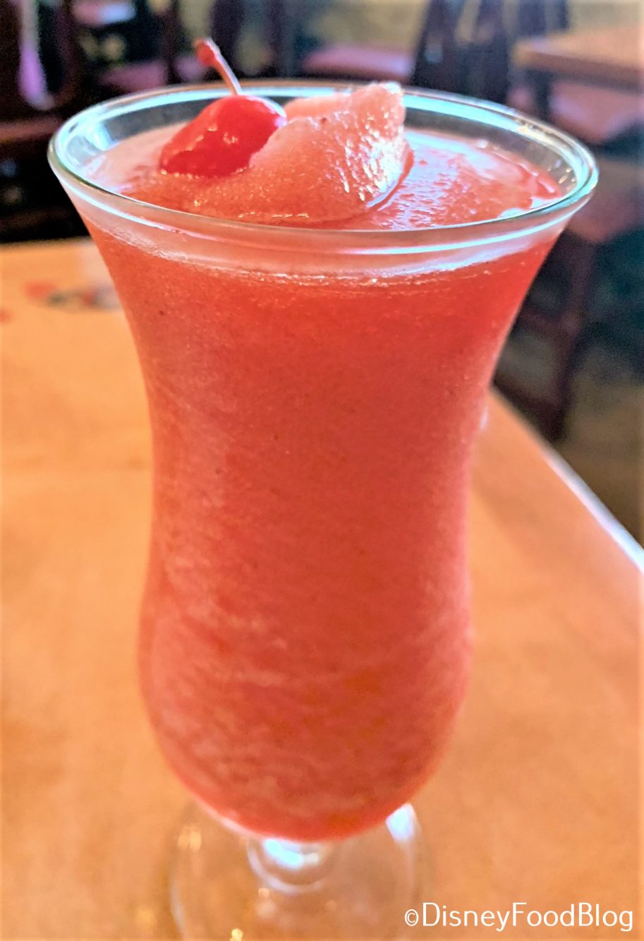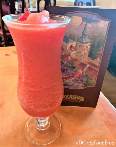 It was quite tasty, as far as frozen drinks go! It wasn’t super SUPER sweet (though still very much in the sweet family), and it was quite refreshing after a hot day walking around the World. The main flavor is certainly strawberry, as the banana was pretty muted. It reminded us of a daiquiri, but less sweet. If you’re a frozen drink fan, this one is worth a try. (That said, if you’re going to drink one frozen drink in World Showcase, our vote still goes to a margarita in Mexico or slushy in France.)