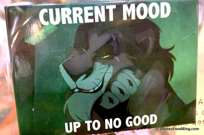 Check out these new Current Mood Magnets we just discovered in Disney World. Man, we love ourselves some good Current Mood memes, so naturally, these new magnets featuring Disney characters fit the bill nicely! Check out this one of Scar from The Lion King looking all EXTRA…