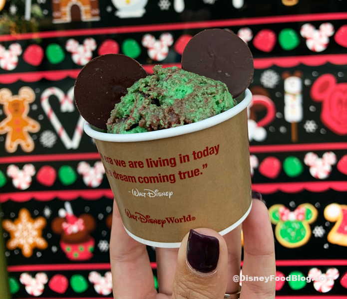 If you’re cruisin’ to the food trucks at Disney Springs this holiday season, you’ll find a brand new Candy Cane Cookie Dough.