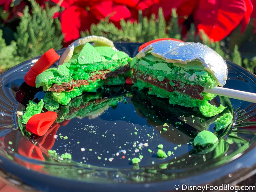 We were delighted with this picture-perfect, festive treat, and think it will be a definite crowd-pleaser! You can try out this holly jolly treat for yourself, available for $5 at Amorette’s Patisserie in Disney Springs!