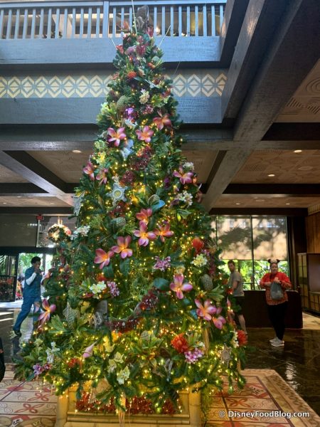 Two words to describe Disney’s Polynesian Resort’s Christmas tree: STUN-NING! We can spot a ton of different tropical flower varieties, and even some PINEAPPLES! Great — now we gotta jam over to Tambu Lounge to grab a Lapu Lapu real quick, brb!
