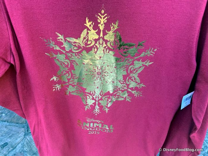 Check out the Animal Kingdom Holiday Shirt we just scored! It’s $34.99 and features a gorgeous shade of holiday red with a gold foil transfer design of a beautiful, shiny snowflake!