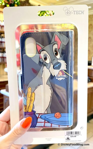 But, you can buy a Lady and the Tramp Phone Case and Wallet at The Emporium on Main Streets, U.S.A. in Disney’s Magic Kingdom. The beautiful dark blue case features Lady munching on some spaghetti on the front.