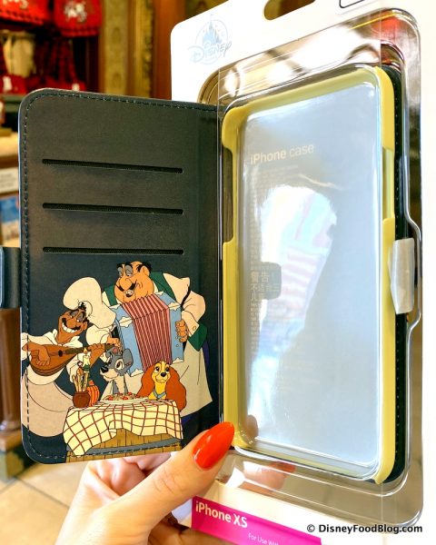 The Lady and The Tramp phone case wallet is available for $34.99 for the iPhone XS and XS Max at The Emporium on Main Street, U.S.A. in Disney’s Magic Kingdom!