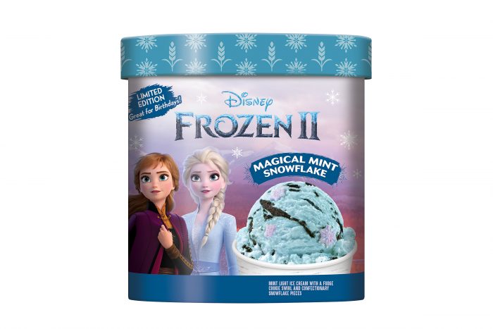 In what seems like a very well-suited collaboration, People.com is reporting Edy’s Ice Cream and Carvel have released a few limited-edition Frozen 2-inspired ice cream flavors! The flavor Magical Mint Snowflake is blue mint ice cream with chocolate chunk cookies and purple candy snowflakes.
