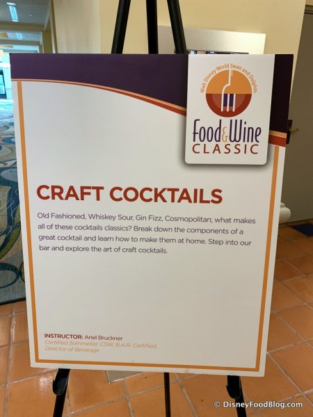First up, we were super-stoked to be attending the Craft Cocktails class this year! For $55, you get to enjoy three full-size cocktails — so yeah, you know we were quick to signup for THIS one!