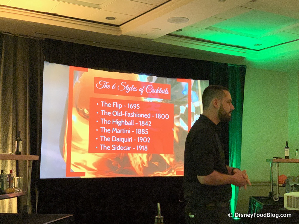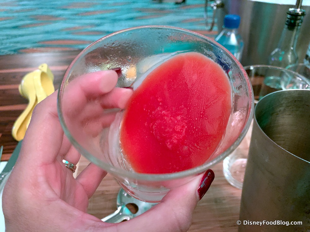 During the class, we rolled up our sleeves and got to make two fun cocktails! The first was a daiquiri, made with fresh-squeezed lime juice, rum, and simple syrup. But the fun part was the Swan and Dolphin team had previously made a frozen strawberry mixture in a glass, which served as our ice! As it melted, strawberry flavor mixed with the drink! Adding this to our party hosting ideas list.