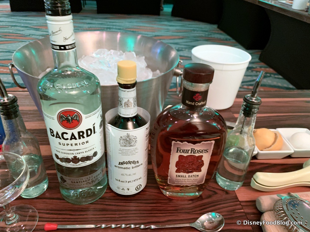 …including some Bacardí Rum, Four Roses Bourbon, and aromatic bitters.