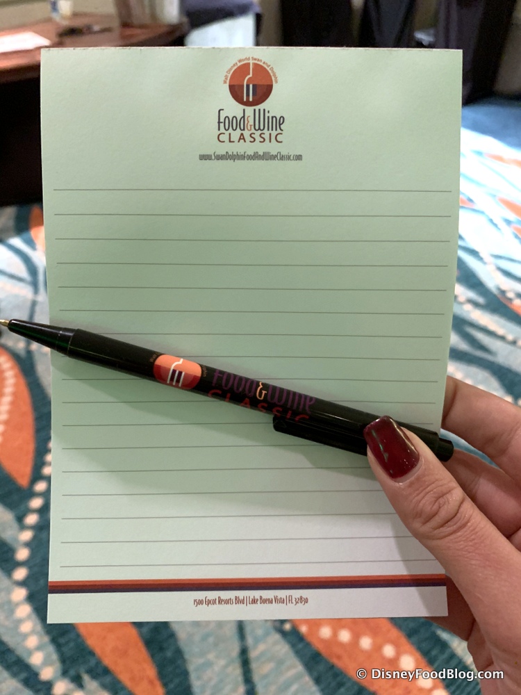 All our new wine and cocktail knowledge wasn’t the only thing we were taking home with us. Check out the cool Food and Wine Classic notepad and pen we scored!