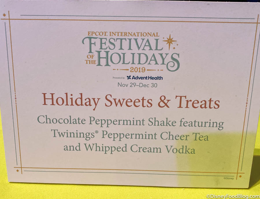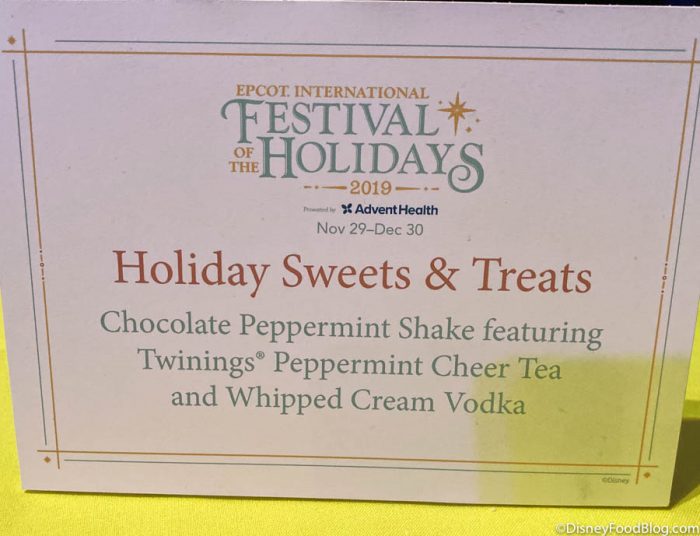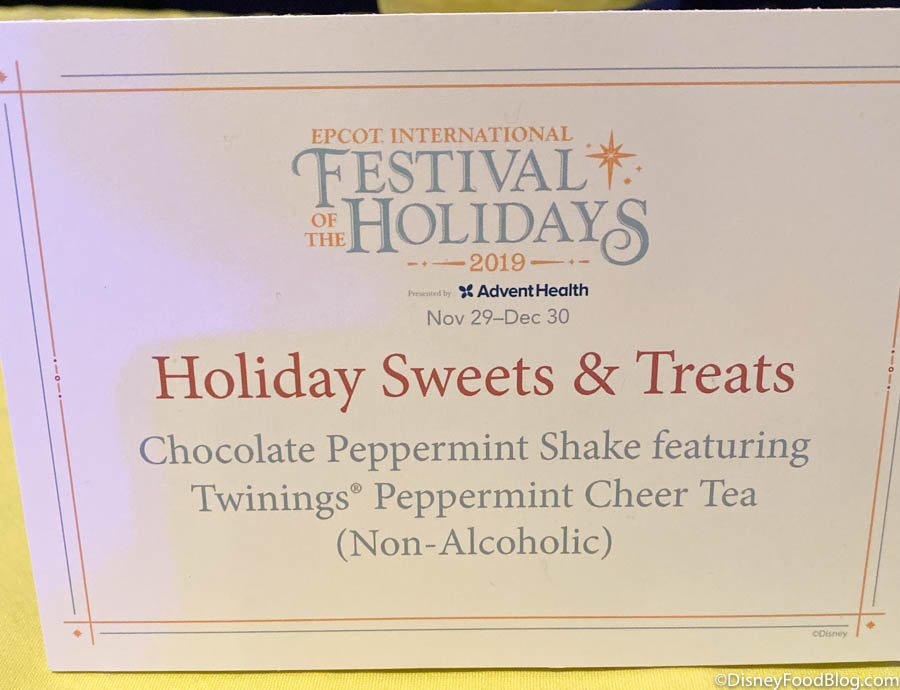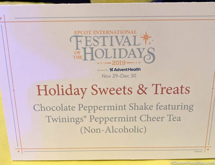 Holiday Sweets & Treats is also returning with some Christmas flavors! While guests can take a bite of the Peppermint Sundae again this year, now they’ll be able to sip on the non-alcoholic Chocolate Peppermint Shake infused with Twinings Peppermint Cheer Tea…