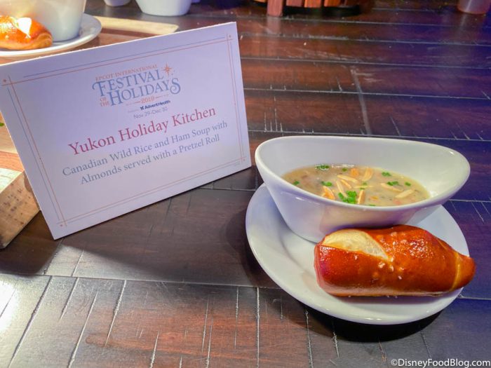 The Yukon Holiday Kitchen brings guests a taste of Canadian cuisine during Festival of the Holidays, and they’re back with a new tasty eat! This year, the booth will be serving the Canadian Wild Rice and Ham Soup with almonds served with a pretzel roll.