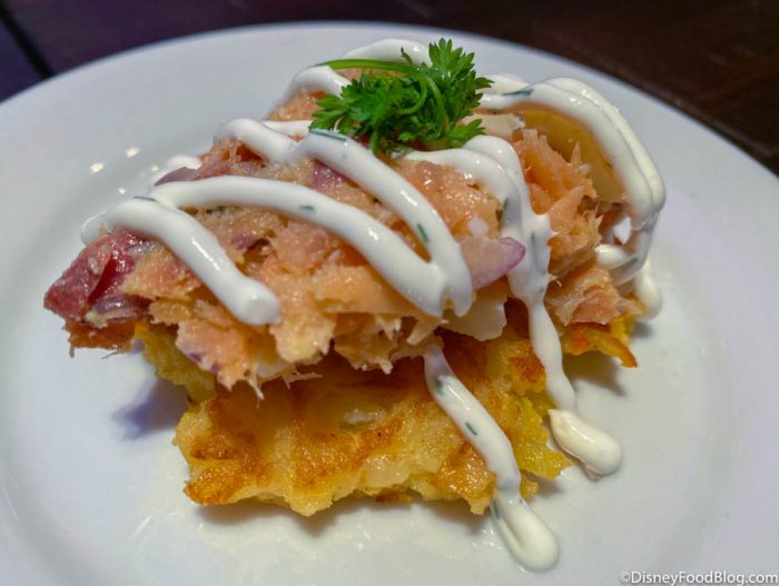 Also on the menu, the Smoked Salmon Potato Latke is arriving at the booth for the holiday season.