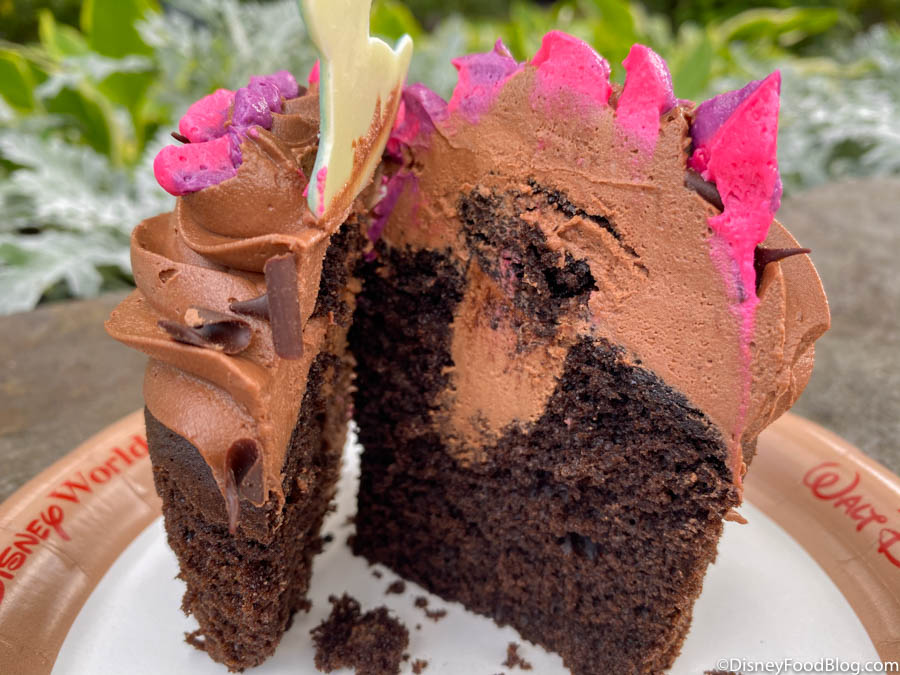 What is that amazing smell? Chocolate! The chocolate cupcake is filled with chocolate buttercream and topped with MORE chocolate buttercream (yes pls), pink and purple “fire” buttercream, chocolate shavings, and a white chocolate Bruni!