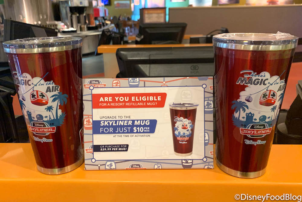 The Skyliner Refillable Mug has soared into the Everything Pop Food Court! You can upgrade to the stainless steel mug from the Plastic Refillable Mug for only $10 more if you’re staying on property. If you’re just stopping by, you can still get the mug for $29.99 to keep your cold drinks cool for up to 12 hours and your hot drinks steamy for up to 4 hours.