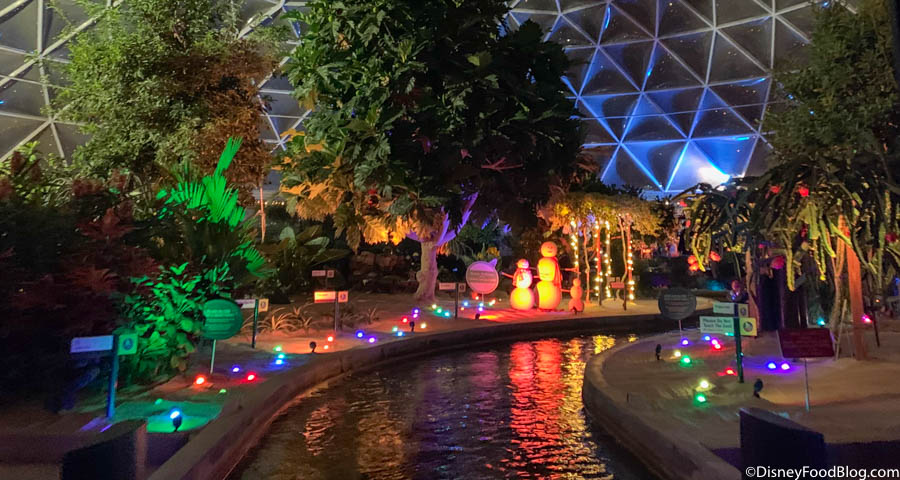 Living with the Land has often placed out small holiday-themed additions throughout the attraction but THIS year, they went ALL OUT with lights, introducing Living with the Land: Merry and Bright Nights!