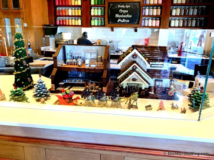 Amorette’s Gingerbread display might not be as big as the one at the Grand Floridian, Contemporary, Beach Club, Saratoga Springs, and Wilderness Lodge, but it’s got a lot of heart — and plenty of hard work put into it!