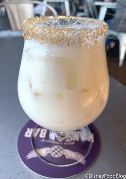 The holidays are about family, food, and fun! And, the Cinnamon Bells is a sweet drink that’s a blast to sip on! The flavor reminds us of eggnog, but not quite. It’s not as heavy, but it’s still just as refreshing while you shop till ya drop for Christmas! Our favorite part has to be the gold sugar rim, which we think every drink in Disney World should have (we’ll be waiting).