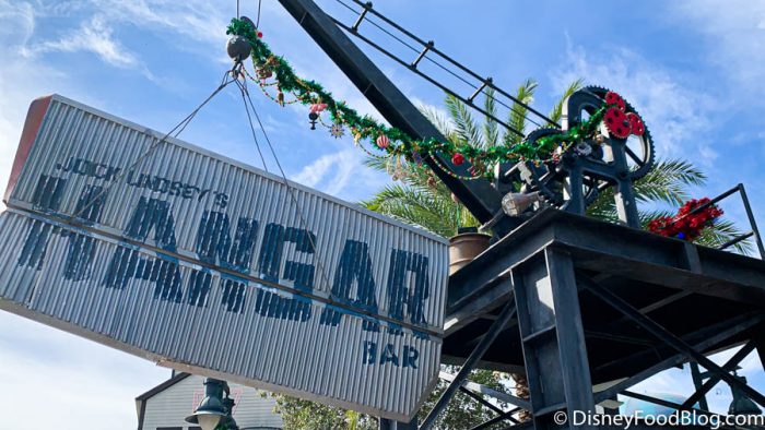 …Jock Lindsey’s is switching things up from an adventurer’s paradise to an explosion of holiday cheer in Disney World! Our favorite time of the year is here, and Jock Lindsey’s Hangar HOLIDAY Bar is giving us some major festive vibes with all its decorations and (most importantly) themed menu items!