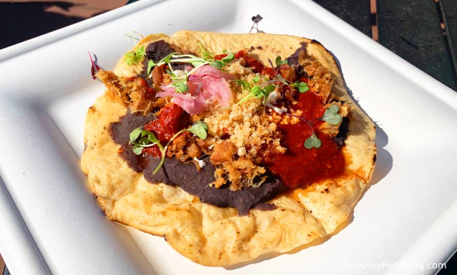 Next up, the Tamal de Pollo stuffs Braised Chipotle Chicken into a Corn Masa tamale. It’s topped with Yellow Mole and Toasted Pumpkin Seeds, Queso Cotija and Crema Mexicana. This is another gluten-free eat and it’s priced at $6.75!