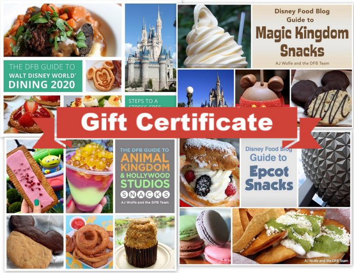 Thinking about giving the gift of DFB Guides this year to the Disney Food Lover in your life? It’s SO easy to do with our DFB Guide + Snacks Bundle Gift Certificate (or any of our other Gift Certificates)!