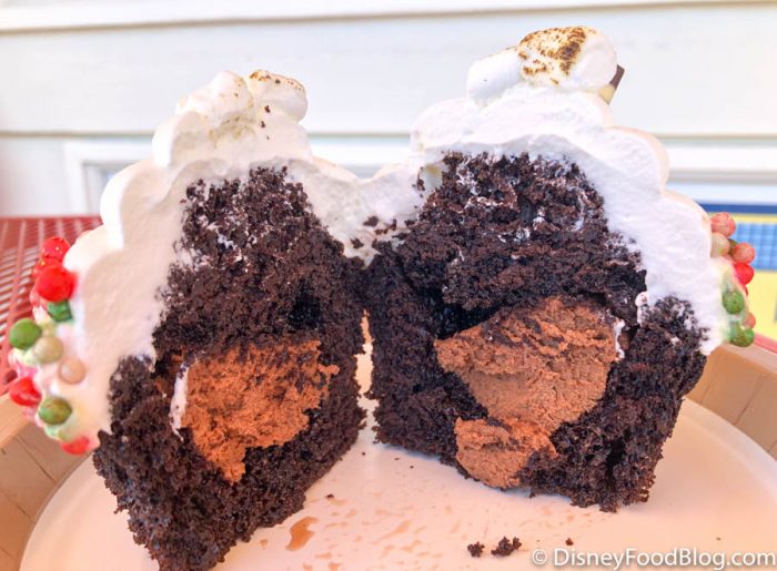 If you’re looking to try the new holiday cupcake, you can find it at the Boardwalk Bakery for $5.99 or a snack credit if you’re on the Disney Dining Plan!