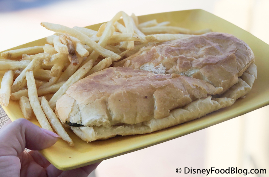 The Cuban bread was buttery, flaky, and perfectly pressed. This sandwich is supposed to come with a side of crunchy Plantain and Yucca Chips but we opted for a side of fries instead. The fries were standard Disney Quick-Service fries — crunchy, salty, and warm.