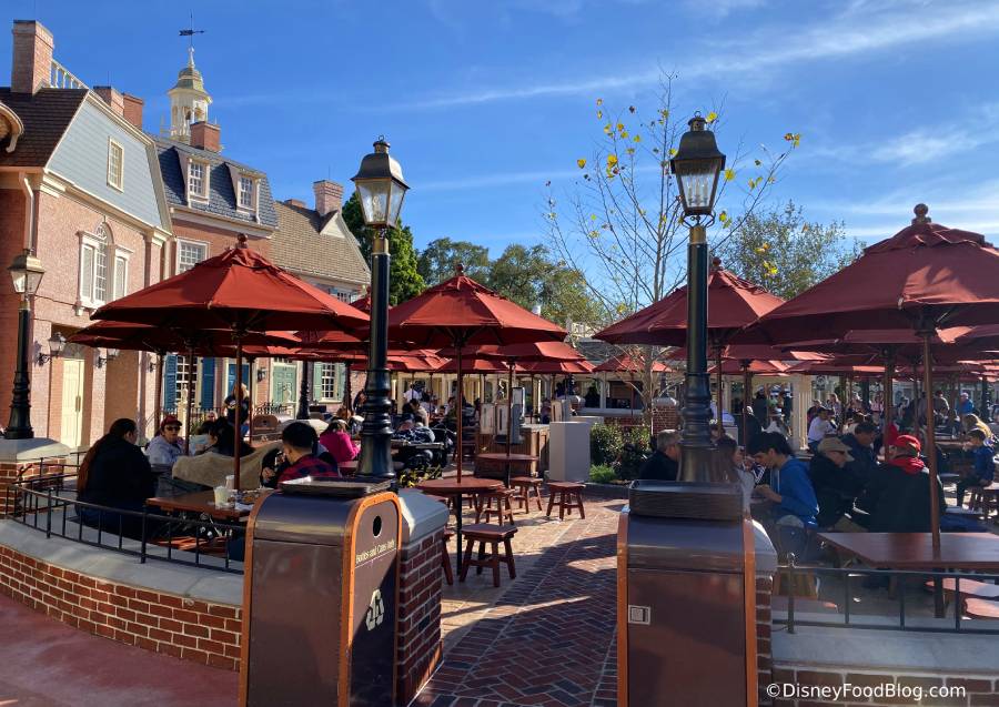 Well, no longer! That’s because the Liberty Square Market seating is finally complete and open and we have alllllll the pics of the snazzy new seating area!