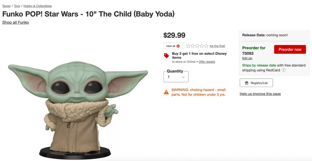 Click here to preorder the Funko POP! Baby Yoda!