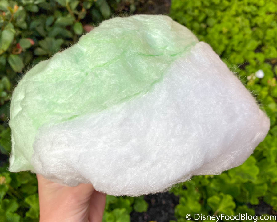 You can pick up the Citrus Apple Cotton Candy for $5 (or a snack credit if you’re on the Disney Dining Plan)over at the Popcorn Cart in the Hub Near Cinderella Castle in Magic Kingdom.