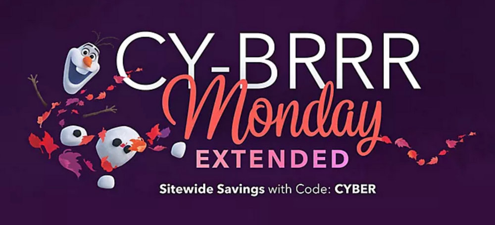 If you missed out on yesterday’s HUGE shopDisney savings, don’t worry! There’s still time! You can still get in on shopDisney’s sitewide sale because they’ve just extended their special Cyber Monday deal! Just fill your cart up and enter the promo code CYBER at checkout!