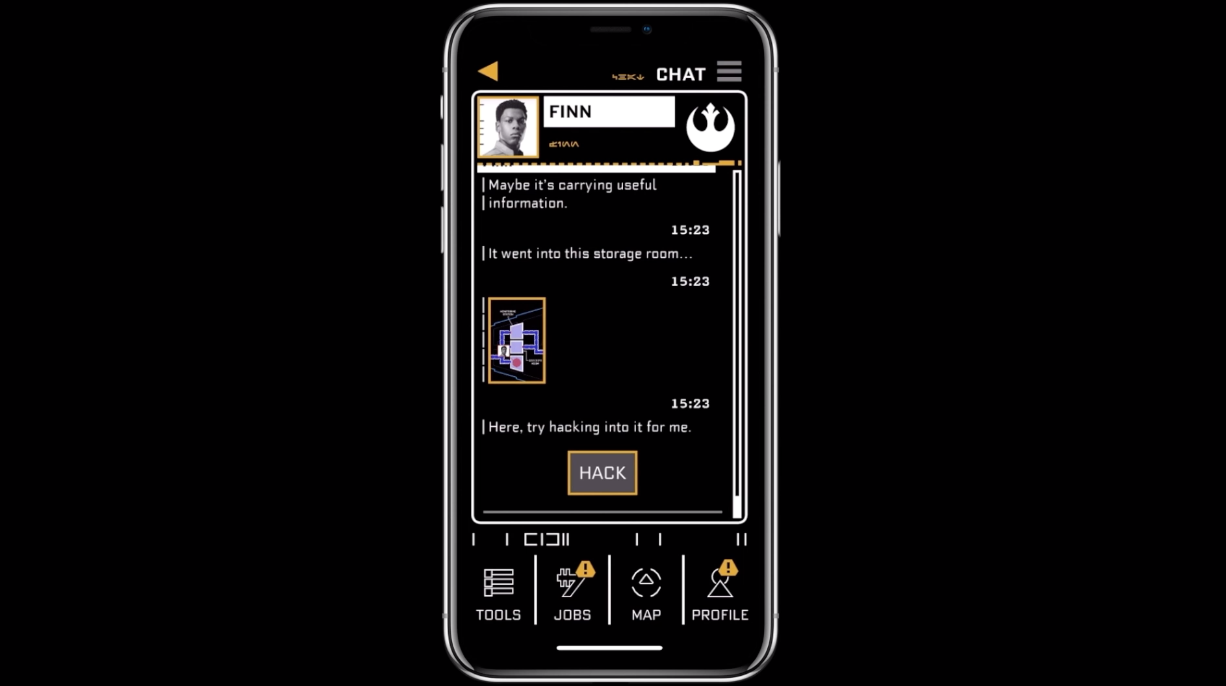 First off, you’ll need to choose a side! To do this, when you open the app, look out for the new Star Destroyer icon in your Datapad! According to Disney, if you choose to help the Resistance “you’ll receive a distress signal from Finn, who is undercover on a Star Destroyer near Batuu.” From there, you can help him navigate the Star Destroyer by controlling his path. What happens next will depend on the route you navigate for Finn! But, along the way, chances are high that you may get to reprogram droids, or even gather information on what the First Order is doing.