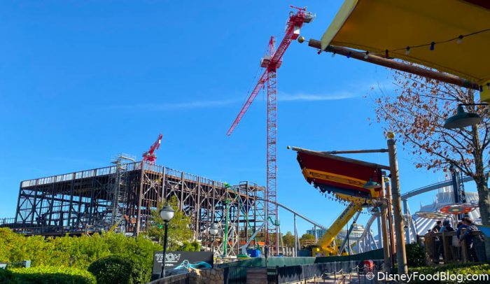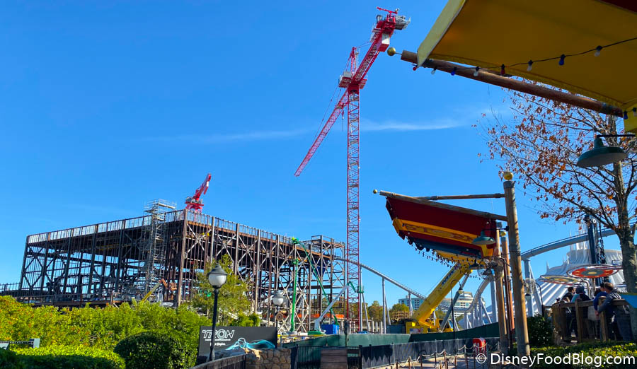 Of course, we’re checking in on the TRON Lightcycle Run construction. The building is really starting to come together, especially since they lowered that last piece of the track into place last week!