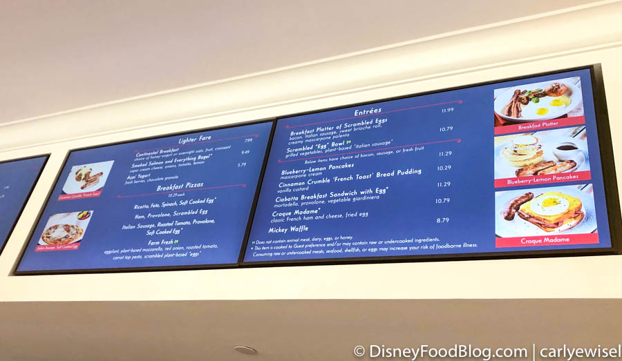 This quick service trattoria will serve yummy dishes, as well as offering grab-and-go options. Some of their breakfast options are displayed below, including the tried-and-true FAVE Mickey Waffle!