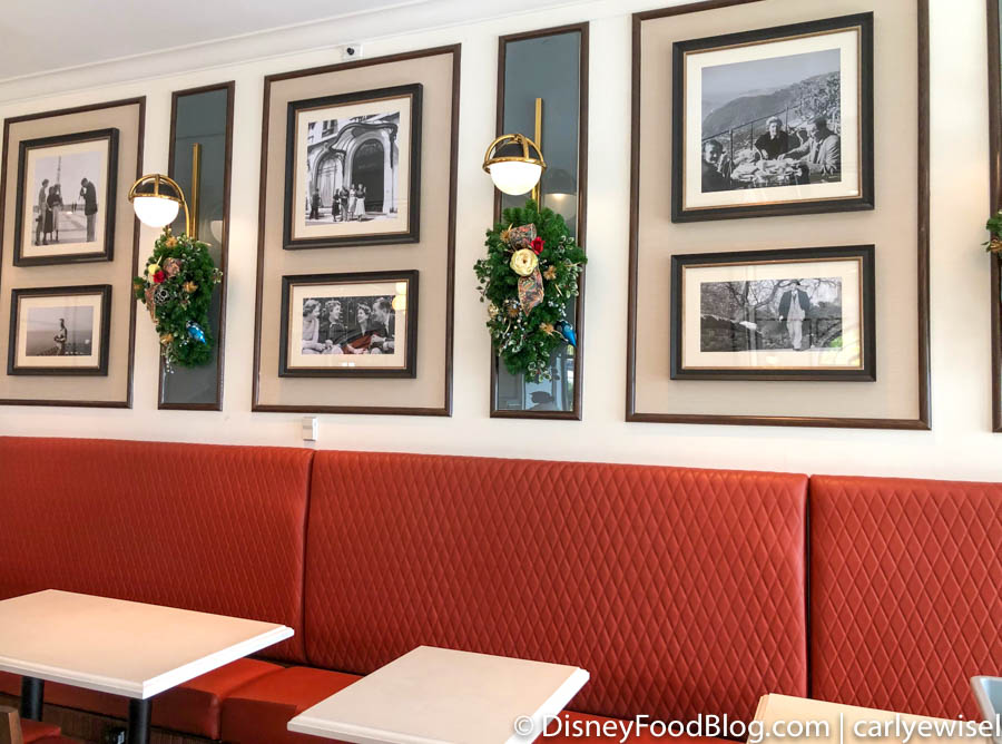 Designed to be a “gathering spot”, the lounge is the perfect spot to sit back and relax, surrounded by stunning decor (and even some holiday decorations!). Located next to Le Petit Cafe, the Voyageurs’ Lounge’s decor is inspired by the books that Walt Disney collected, and by his time in Europe! It looks like it even includes some books to read as well – how cool is that?!