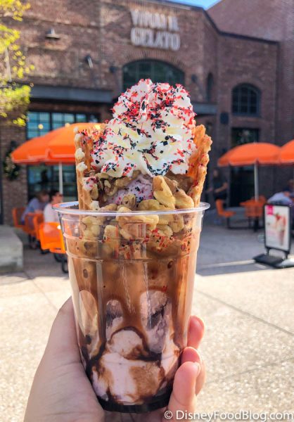 The most wonderful time of the year has arrived at the Most Magical Place on Earth, with all kinds of peppermint or gingerbread goodies abound! Today, we’re heading over to Vivoli il Gelato in Disney Springs to try out another cheery treat!