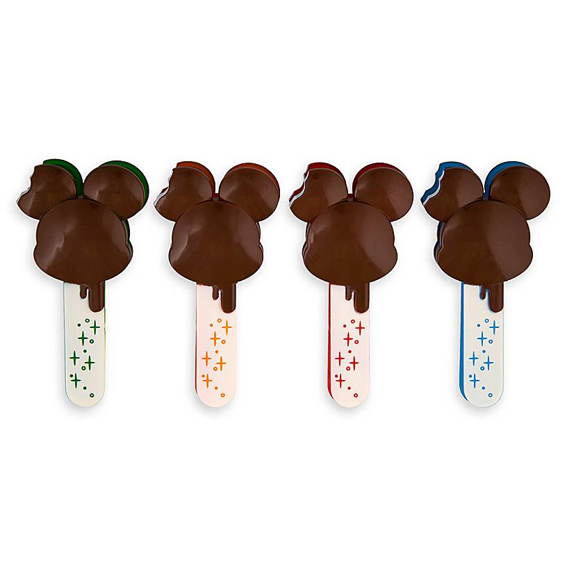 Aren’t these little guys cute?! Keep those chips n’ snacks fresh than with these Mickey Ice Cream Bar Bag Clips! The set comes with four clips, each in a different color and adorned with the iconic park treat.