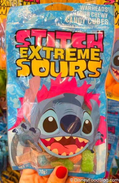 It’s hard to think of a place more full of sugary goodness than Main Street Confectionary, so it comes as a little surprise that these tasty new treats have found a home here. BONUS! They feature our fave mischievous blue alien. We snagged two of the new Stitch Extreme candy flavors! We saw two fun flavors that we just had to try — Stitch Extreme Sweet Heat and Stitch Extreme Sours.