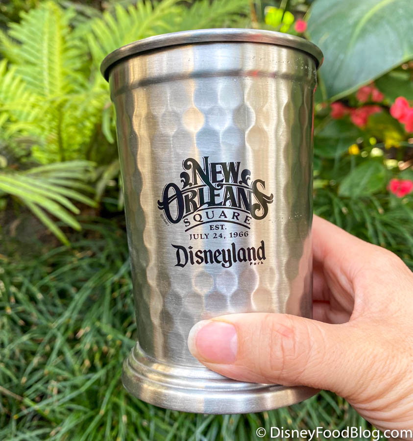 The hammered stainless steel cup comes emblazoned with the logos for both Disneyland and New Orleans Square, as well as the date of July 24, 1966, which was the day that New Orleans Square officially opened at the park!