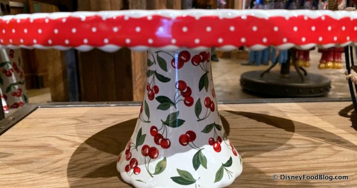 Plus the pedestal of the cake stand is covered in cute little cherries, while the top is red with white polka dots!