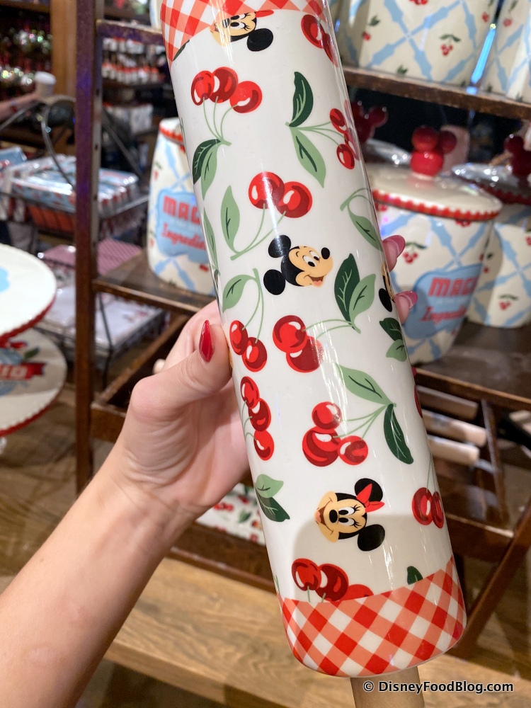There’s also this classy Retro Minnie Ceramic Canister for $34.99! We love how the red and blue colors along with the cherry, floral, and gingham patterns are carried throughout the entire collection!