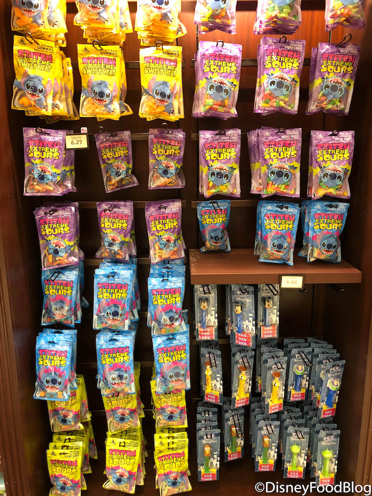 Or, if you’re wanting something a little extra space-cial, you can pick up the Stitch Sour Snacks to take with you around the parks! Snack on the Cherry Berry, Spicy Mango, and more for some sour flavors or sweet heat for $6.29 or a Disney Dining Plan snack credit.
