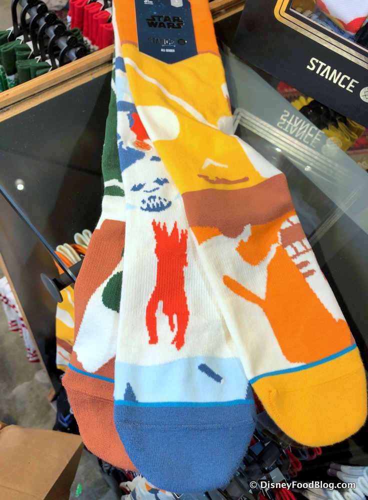 We found the socks at Disney Springs yesterday, so be sure to be on the look-out for ’em! Just don’t let the First Order see you wearing em’ — then they’ll know you’re with the Resistance! Well, unless you’re wearing the Kylo Ren and Stormtrooper socks together! Then you’ll probably be ahight!