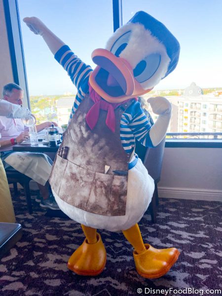 Although the atmosphere is a reason enough to visit Topolino’s, the Breakfast a la Art is a character breakfast you don’t want to miss! While you can choose your entrée from options like the Quiche Gruyère, Sour Cream Waffles, or Wood-fired Butchers Steak…