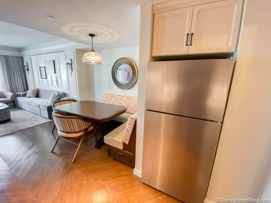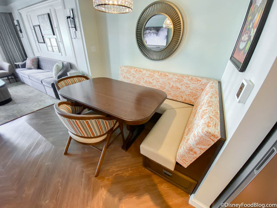 Right next to the kitchen, there’s an adorable built-in booth where you can eat together as a family…
