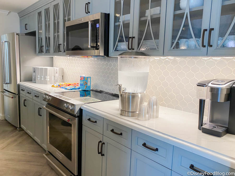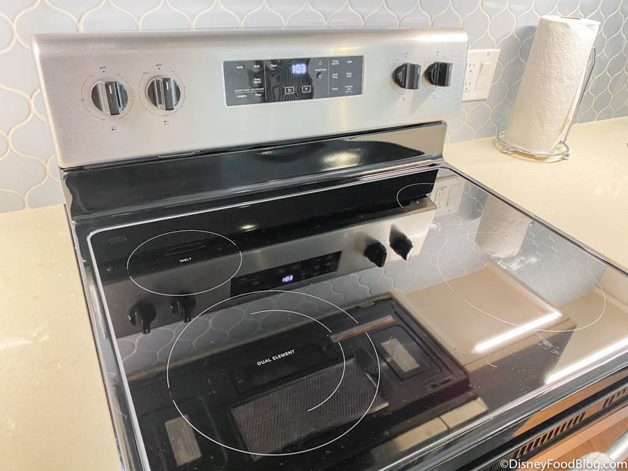 The villa has a beautiful kitchen with stainless steel appliances, so you can make your own meals outside the park!