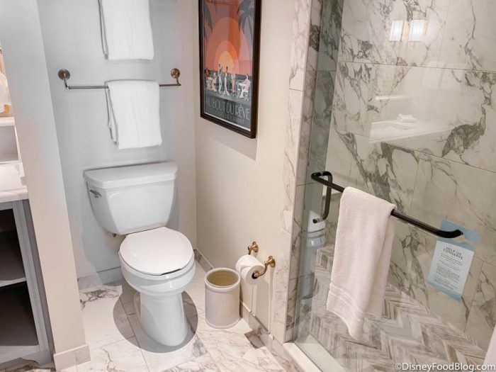 The staircase that leads outside has a slightly bent, wavy feel that reminds us of the ocean and French architecture (Disney really does think of everything!)…