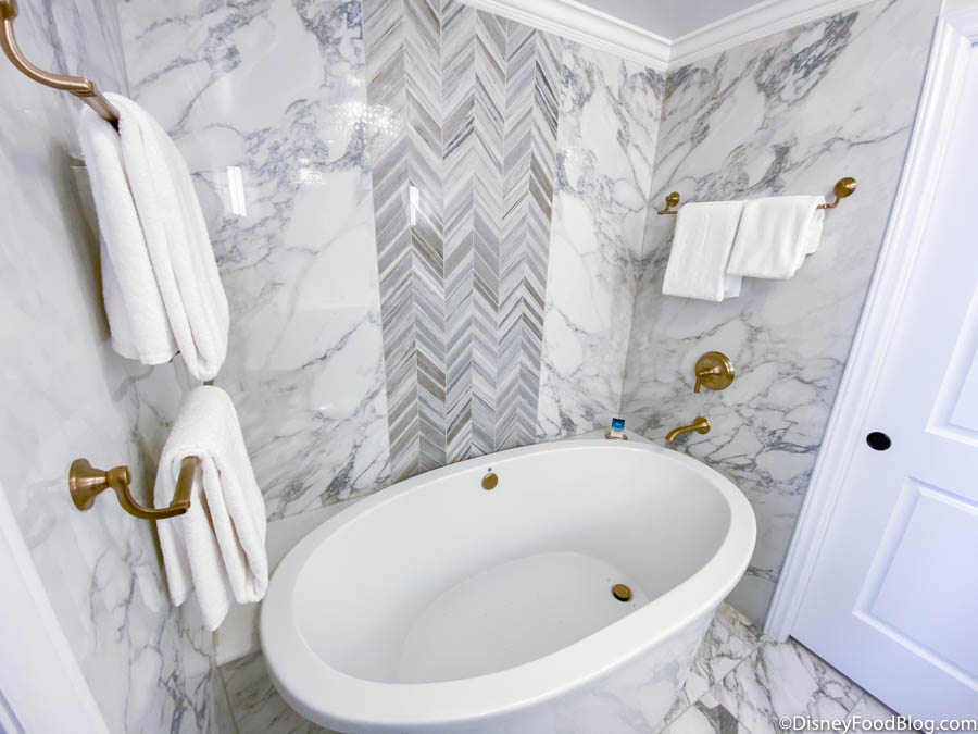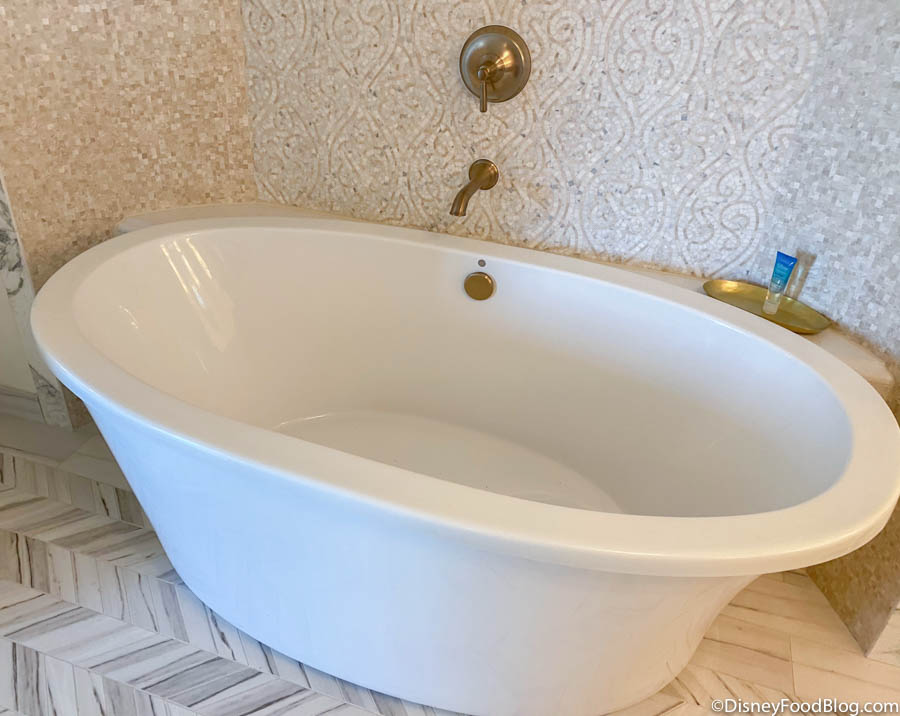 …and a rounded bathtub (wine and a bath sound like the perfect duo at the Riviera)! And, there’s even a THIRD bathroom in the grand villa, which means you obviously have to use them all!!