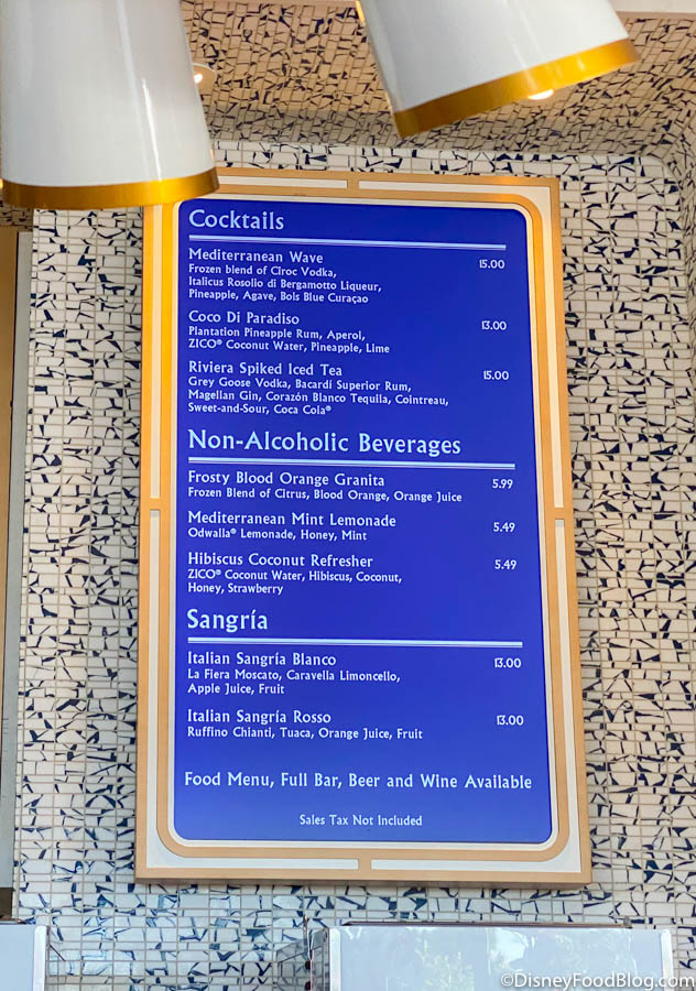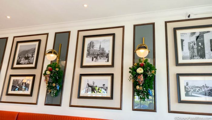 No matter what you pick to sip or snack on, you can admire the photos of Walt Disney’s Mediterranean travels hanging on the walls, reminding us of the man who started it all!